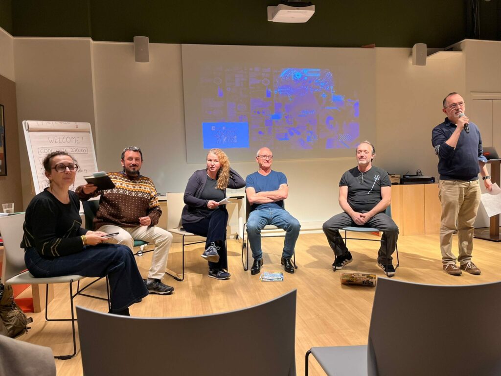 Invité-e-s Table ronde (de g. à d.): Laure Ferry (INRAP), Ronan Kirsch (Réseau FRENE), Sophie de Quatrebarbes (ClassCode) et Bertrand Fichou (Rédacteur en chef Youpi et Images Doc), DavidTressières (Francas Occitanie)